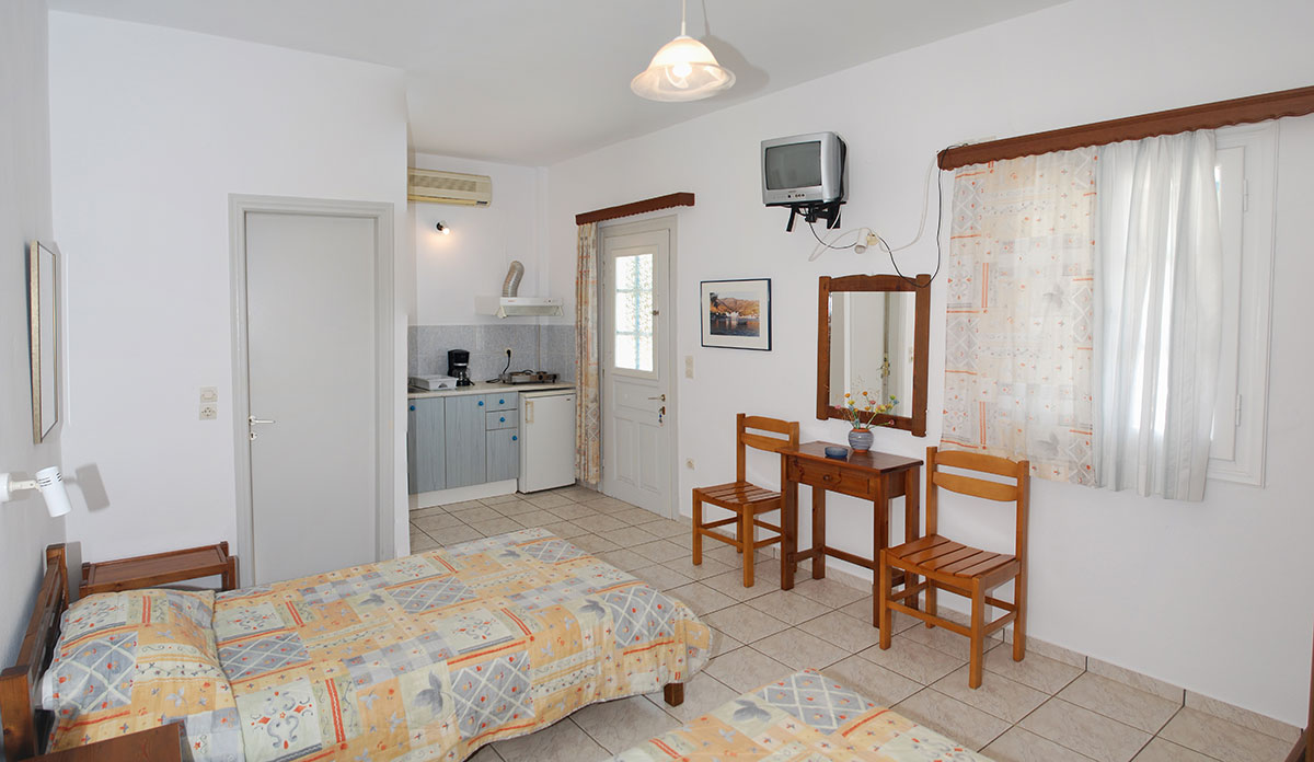 Το συγκρότημα αποτελείται από 7 δωμάτια χωρητικότητας 1-3 ατόμων και 2 διαμερίσματα χωρητικότητας 2-4 ατόμων που βλέπουν σε έναν πολύχρωμο κήπο, που με μεράκι και φροντίδα περιποιείται η κυρία Αρετή όλο το χρόνο.